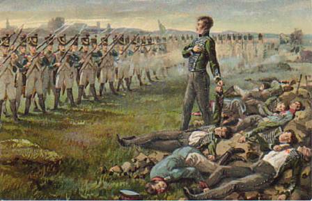 Am 6. Januar 1776 wurde Ferdinand von Schill in Wilmersdorf bei Dresden geboren. Schill beginnt 1790 seine Laufbahn in einem preußischen Dragoner-Regiment und wird während des Krieges gegen Frankreich 1792/95 zum Leutnant befördert. Als es ab 1807 zu Erhebungen der europäischen Völker gegen Napoleon kommt, will auch Schill gegen den verhaßten Franzosenkaiser zu Felde ziehen. Für seine Tapferkeit im Krieg bei der Verteidigung der Festung Kolbergs wurde er bis zum Major befördert und nachfolgend mit dem höchsten preußischen Verdienstorden „Pour le merite“ ausgezeichnet. Am 28. April 1809 verläßt Schill mit seinem Husaren- Regiment die alte Garnisonsstadt Berlin, um gegen Napoleons Truppen zu kämpfen. Sein Unternehmen war nicht von Erfolg gekrönt, da verschiedene ähnliche Aktionen nicht konsequent genug verfolgt wurden. Auf sich allein gestellt, konnte er keinen entscheidenden Schlag fahren. Er verblutete am 31. Mai 1809 in Stralsund, als es im Straßenkampf kein Entrinnen mehr gab. Die Gefangenen der Straßenkämpfe um Stralsund kamen nach Frankreich, verelendeten als Arbeitssklaven auf den Galeeren von Brest und Charbourg. Elf Offiziere des 2. Brandenburgischen Husaren-Regiments von Schill wurden auf Napoleons Befehl vor ein französisches Kriegsgericht gestellt, wegen Straßenräuberei zum Tode verurteilt und am 16. September 1809 in Wesel am Rhein füsiliert. Noch während der französischen Herrschaft wagten zahlreiche Weseler einen Besuch der Gräber und schmückten sie mit Blumen. Die Bevölkerung betrachteten die preußischen Offiziere als Opfer napoleonischer Willkür. Die Gräber wurden somit zum geeigneten Mahnmal gegen die Fremdherrschaft, ein Symbol, daß nicht allein für die Situation der Deutschen stand. Schill und seine Kameraden waren Vorbilder in den Herzen der tapferen Freiheitskämpfer von 1813/14. Schill's Geist siegte am Ende über die Tyrannei Napoleons.